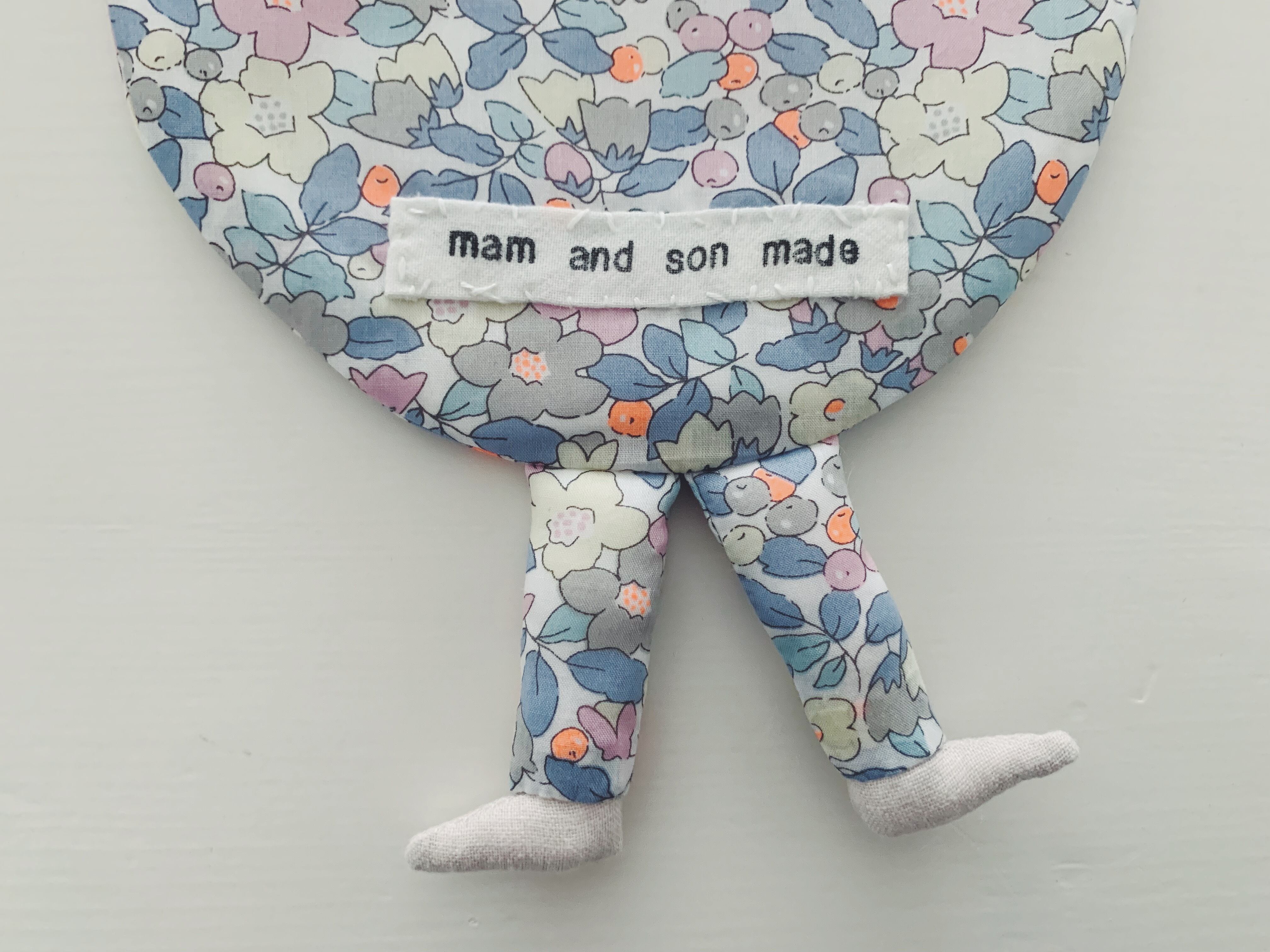 Betsy Bellyというネオンカラーの入っている可愛いlibertyで作った足つきの小さな丸い巾着です^^