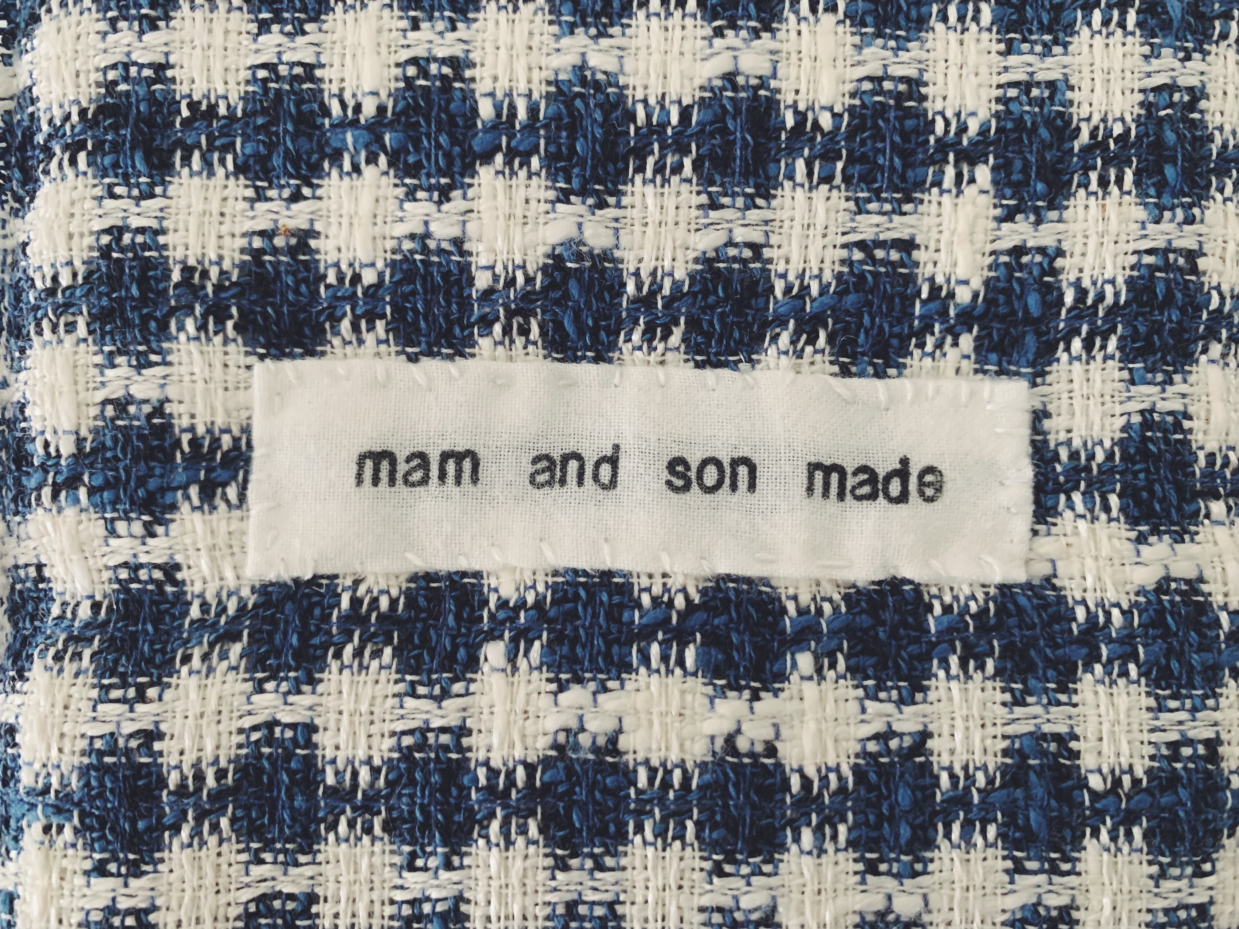 ネイビーホワイトの柔らかな手触りのツイード生地を使い、周りをフリンジ仕上げた四角いマットです。