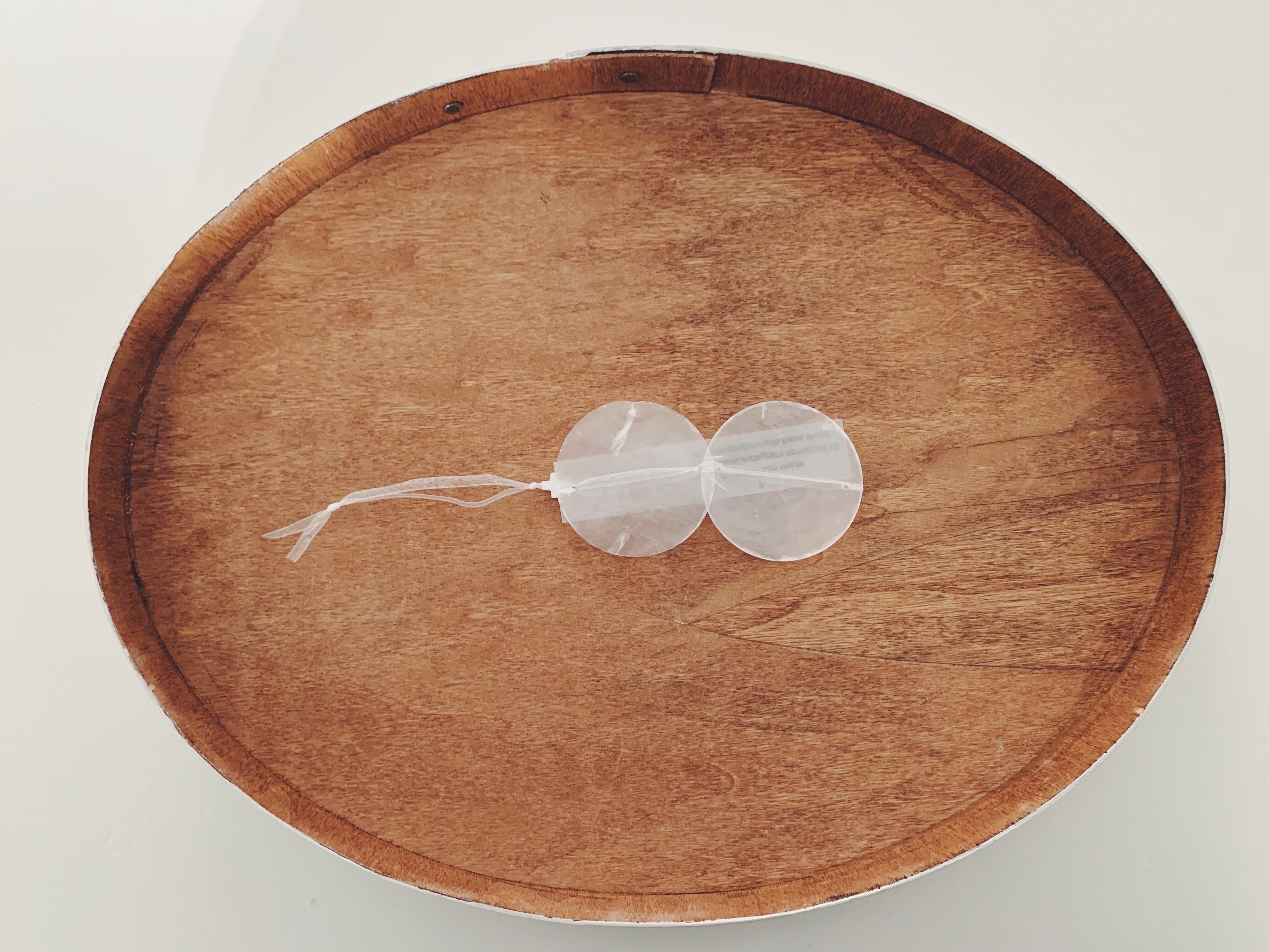 天然素材の貝で飾りを作りました。こちらは2枚の短いタイプです。