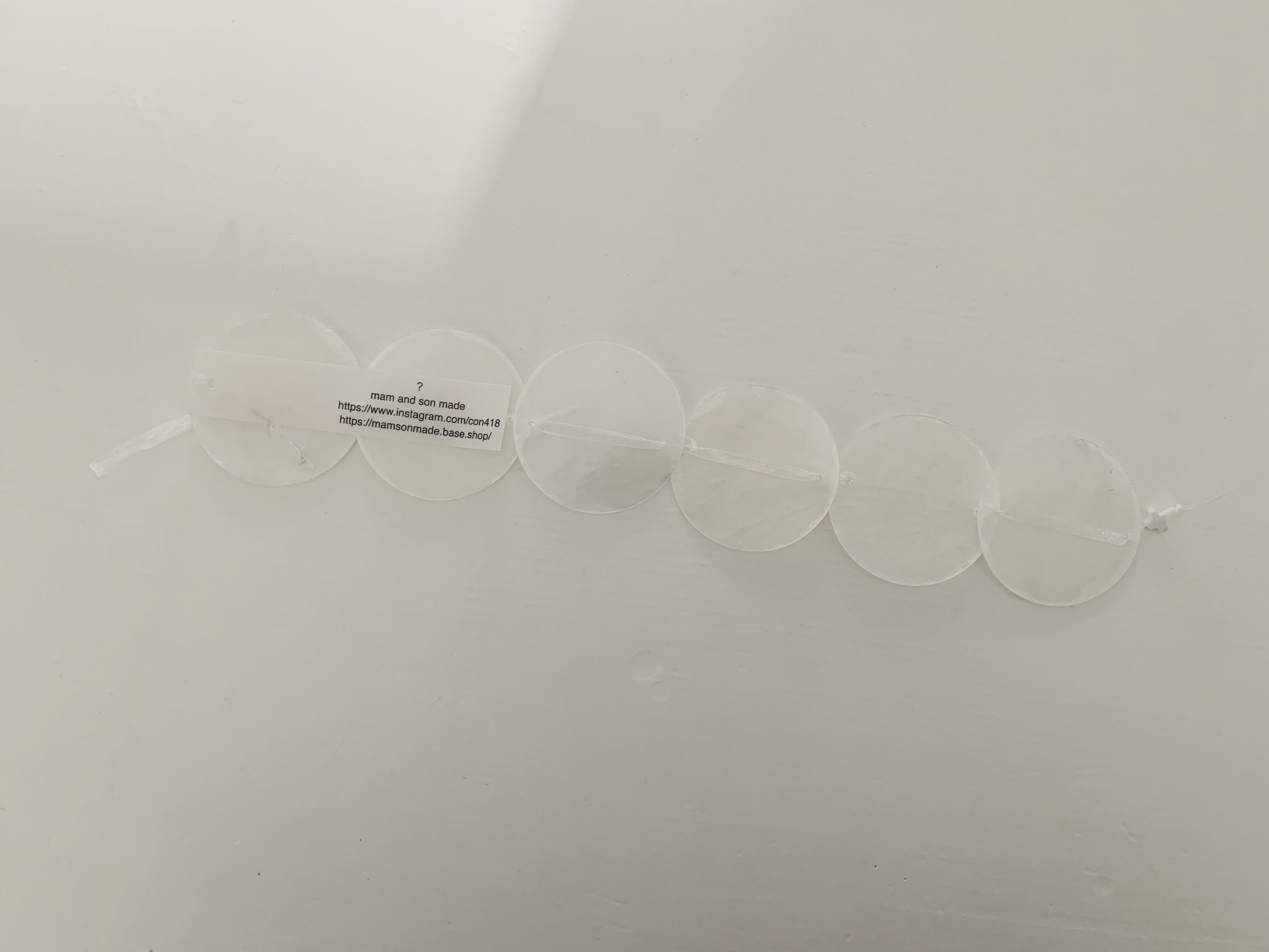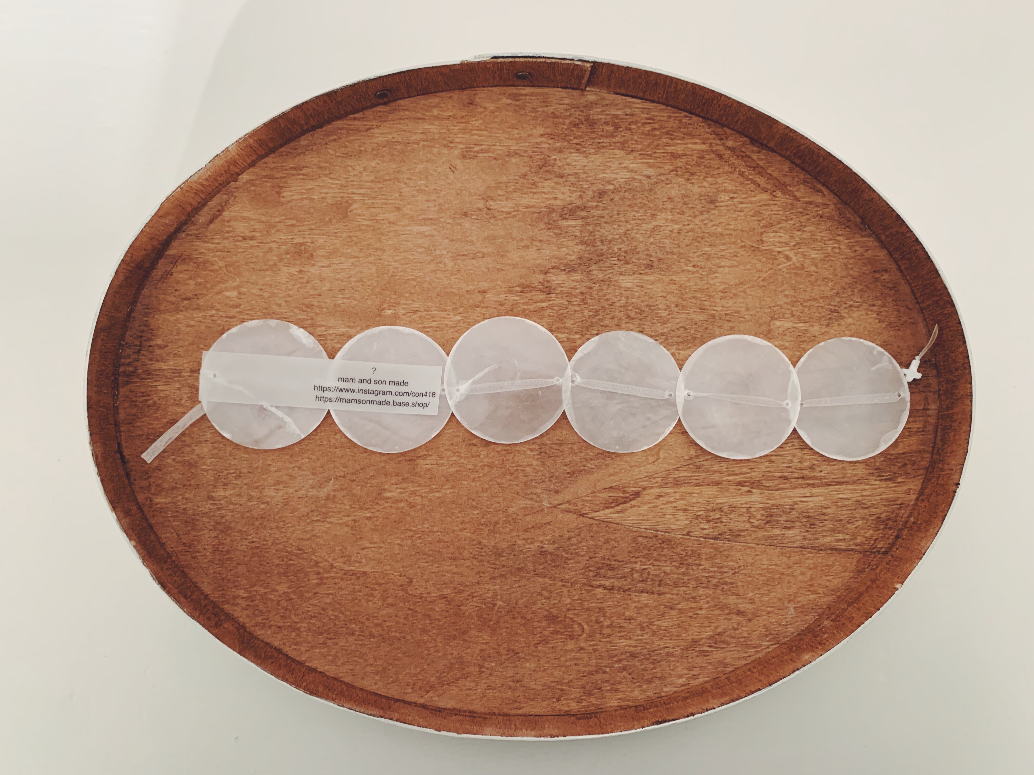 天然素材の貝で飾りを作りました。こちらは6枚の短いタイプです。