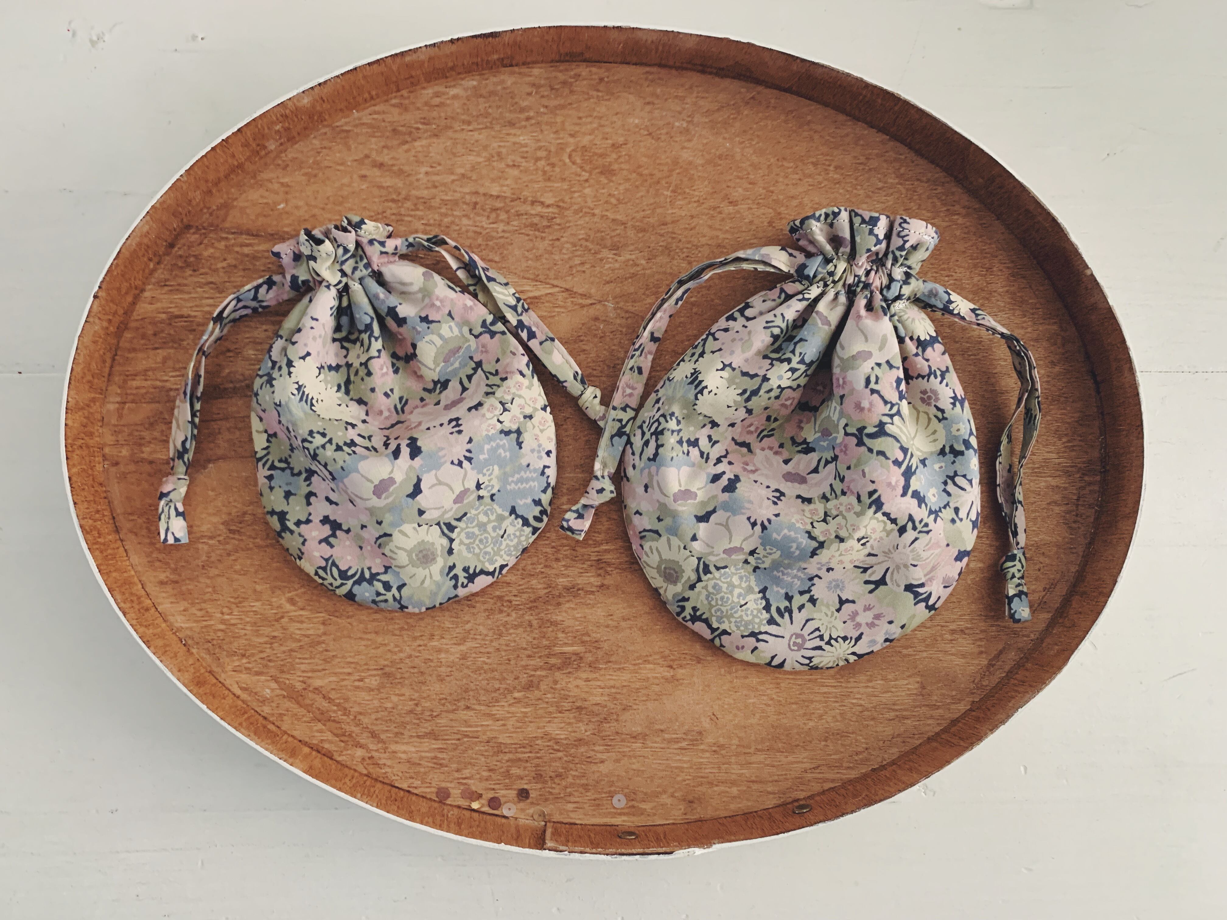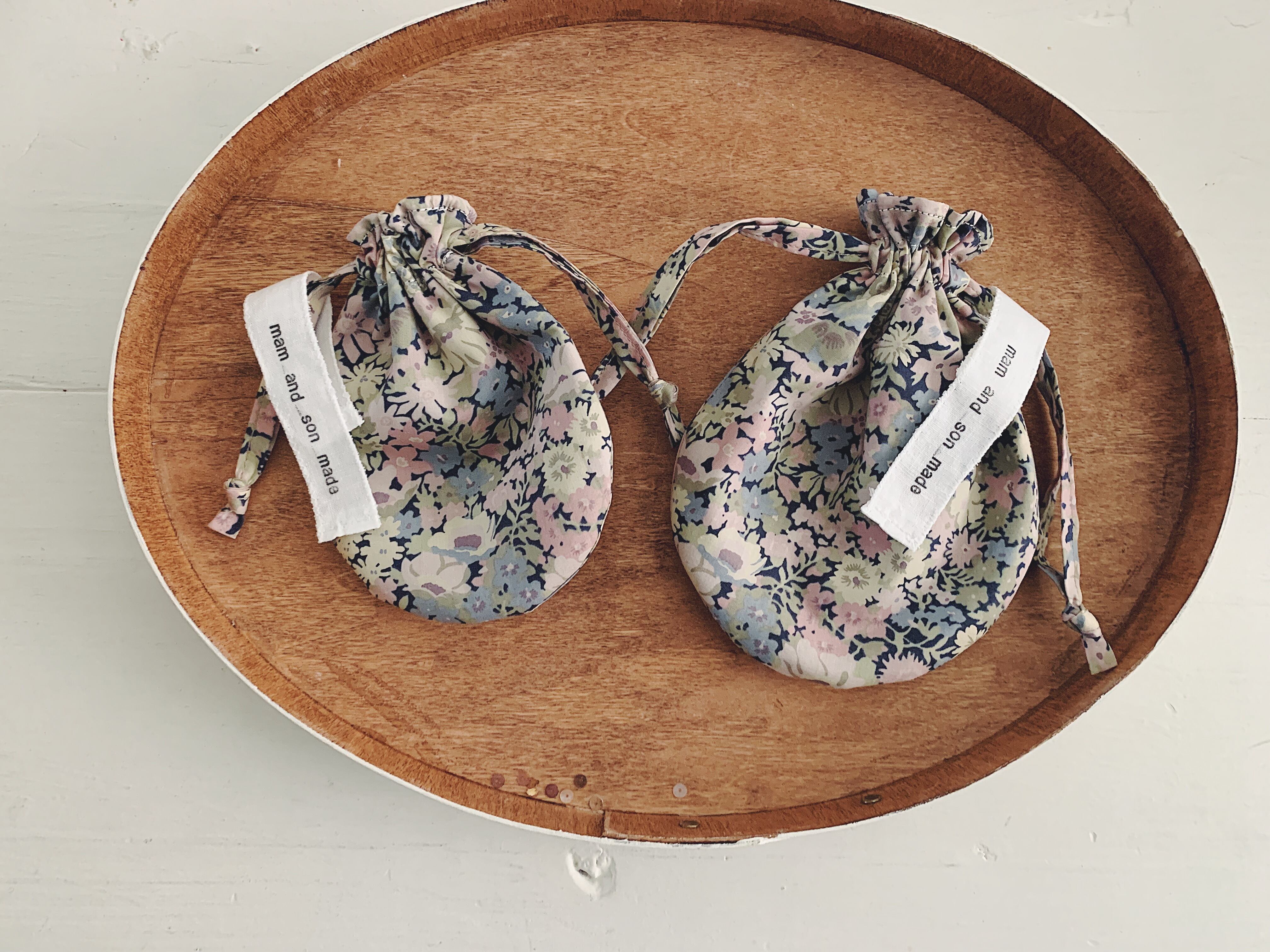 liberty のタナローンThorpeで作った柔らかい小さな丸巾着です。