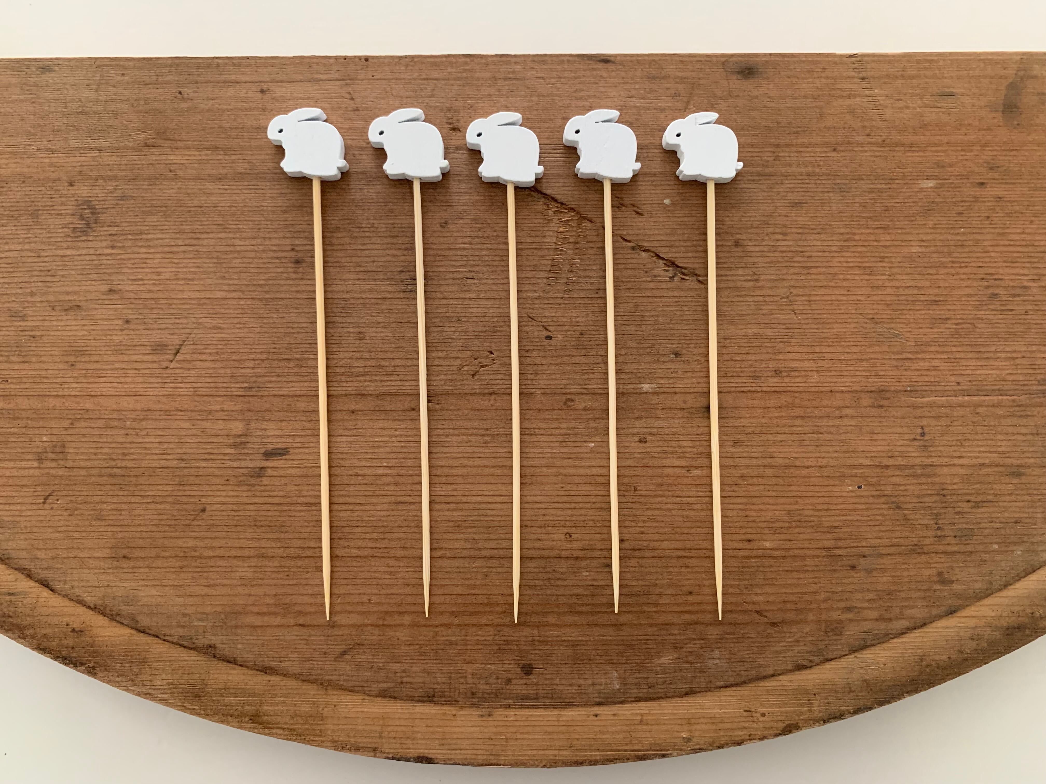 うさぎのピック 10本のセットです。2センチ弱のうさぎのついたピック。全体の長さは13センチ程です。