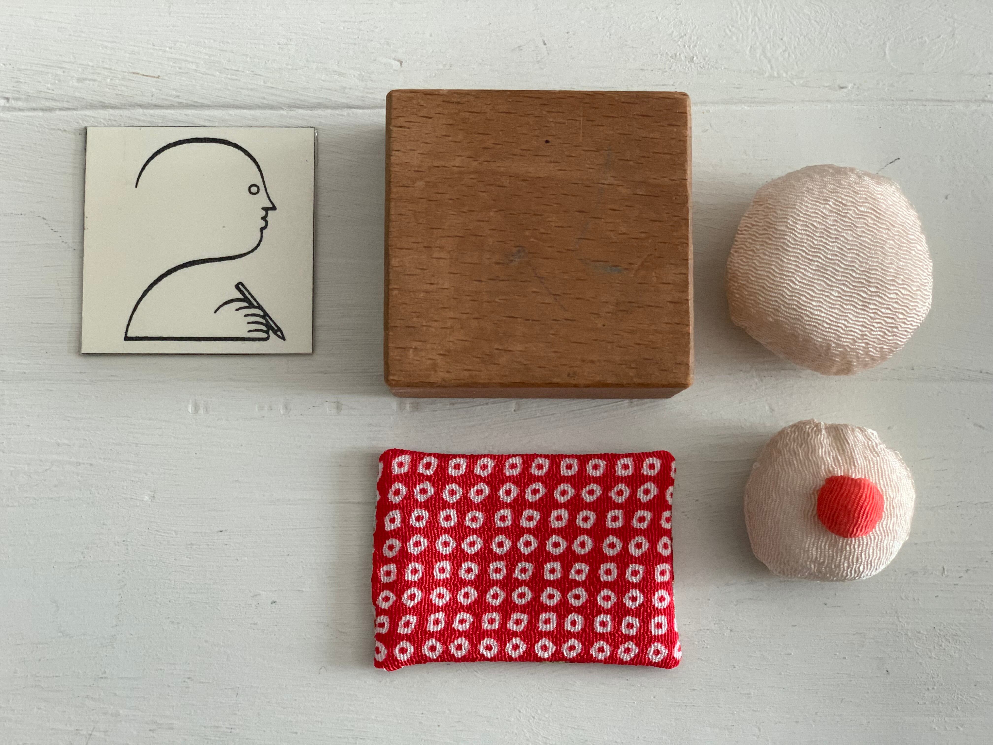 敷物は古い生地とちりめんを合わせ、両面お楽しみいただけるよう、一点一点手作業で作成しました
