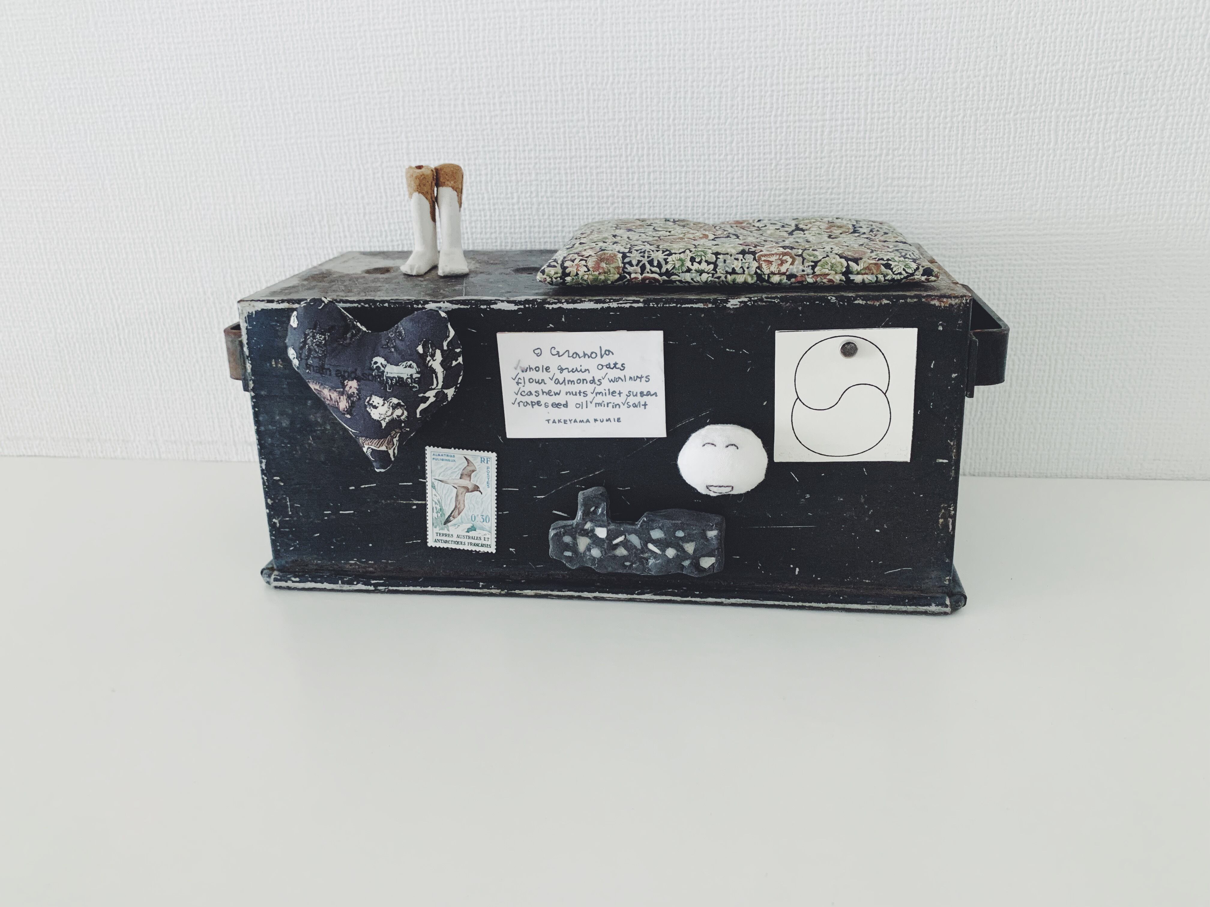 古いパンの焼き型ですが、小物を収納したり、小さな植物の鉢カバーにしたりと汎用性が高いです。マグネットもつくので、自分好みにできるところもポイントが高いです。重さもあり安定していて無骨でカッコいいです
